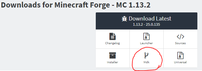 The first step is to download the Forge MDK from their website. Follow this link and from the ‘Downloads for Minecraft Forge – MC 1.13.2’ section, select ‘Mdk’.
